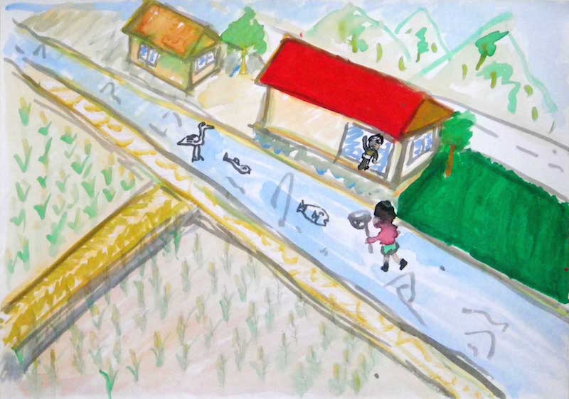 どじょうやフナ、ザリガニがたくさんいたそうです。今はアスファルト道路になっていますが...。